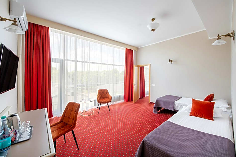 This room is located in a Glass building. The room has a private balcony and a tremendous view of the park and the river Nemunas. The spacious superior room (98 ft² in size) has twin beds (which can be joined together upon guests' request in advance). It has safe, bathrobes, slippers, toiletries, hairdryer, and towels available in the room. The package includes: - A rich breakfast - 1-hour access to the hotel’s swimming pool (Please contact the hotel reception to book a pool time.)